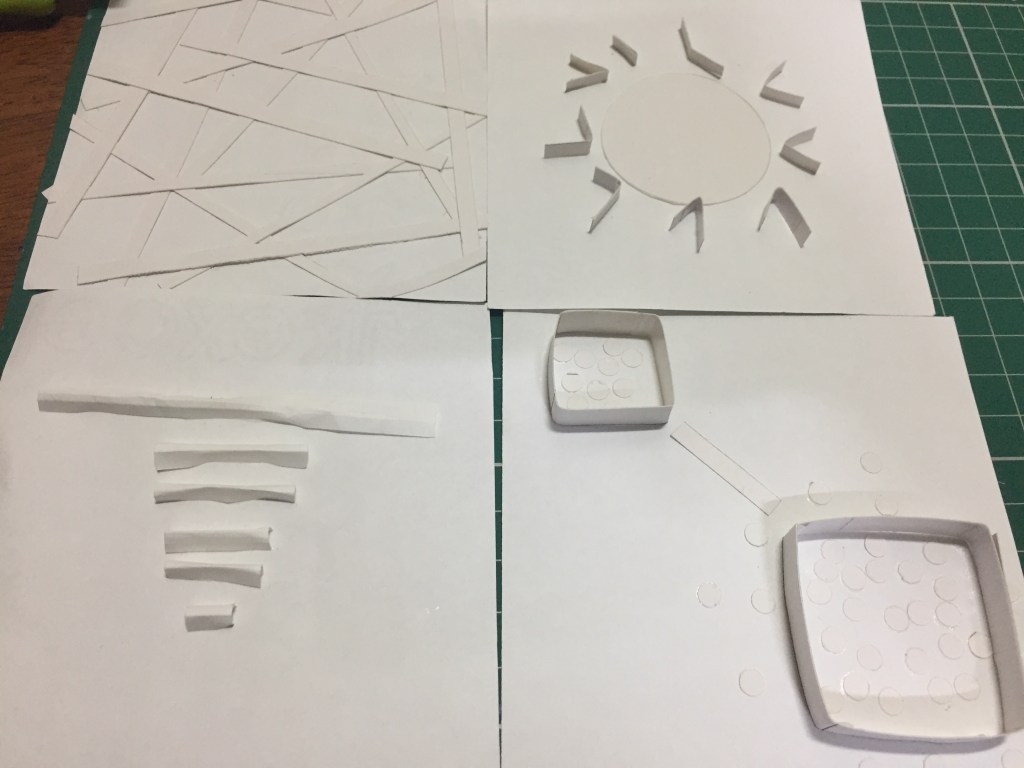 After getting used to it,I started understanding how to manipulate the paper to represent the idea that I want.The actual method itself was definitely tedious,cutting and sticking paper made to fit in a 4×4 space was not easy.But for me,the main motive of the exercise was to take my time,and solidify the idea I want to convey as I make a physical manifestation of it.