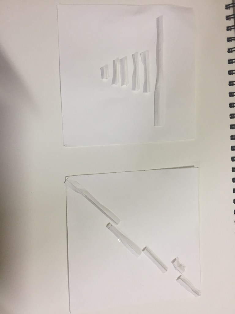 We were to use bond sheets,cut them and stick them according to the designs we made in our sketchbooks.It took a little time to understand the process,and getting accustomed to translate 2D into 3D in a way that the project did not lose the essence of the idea used behind it in the first place.
