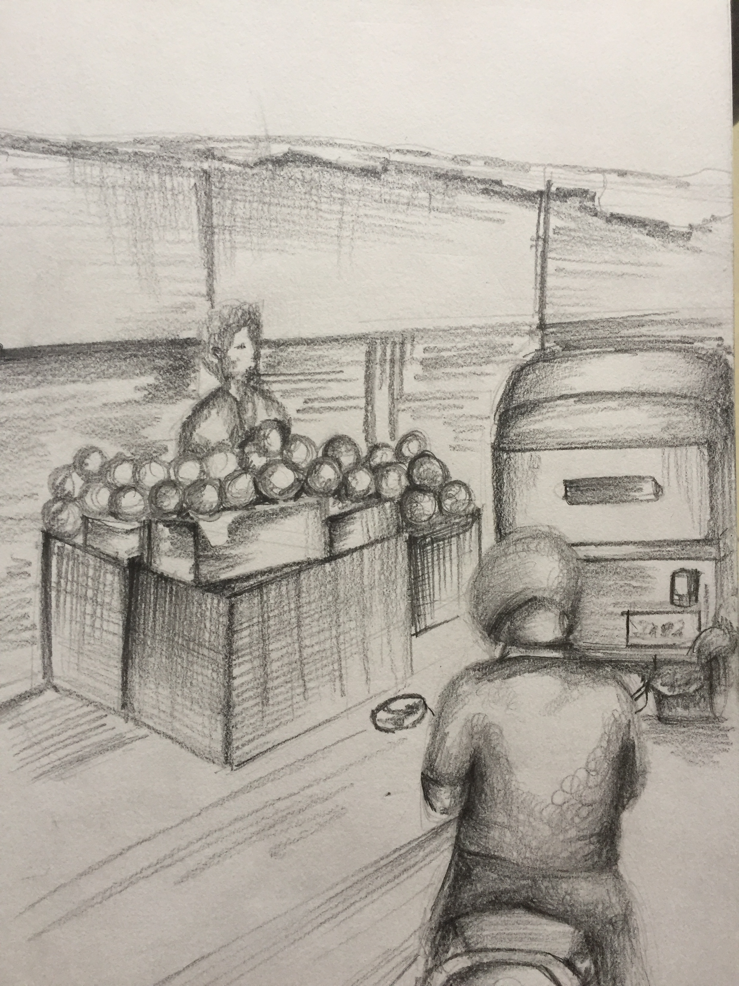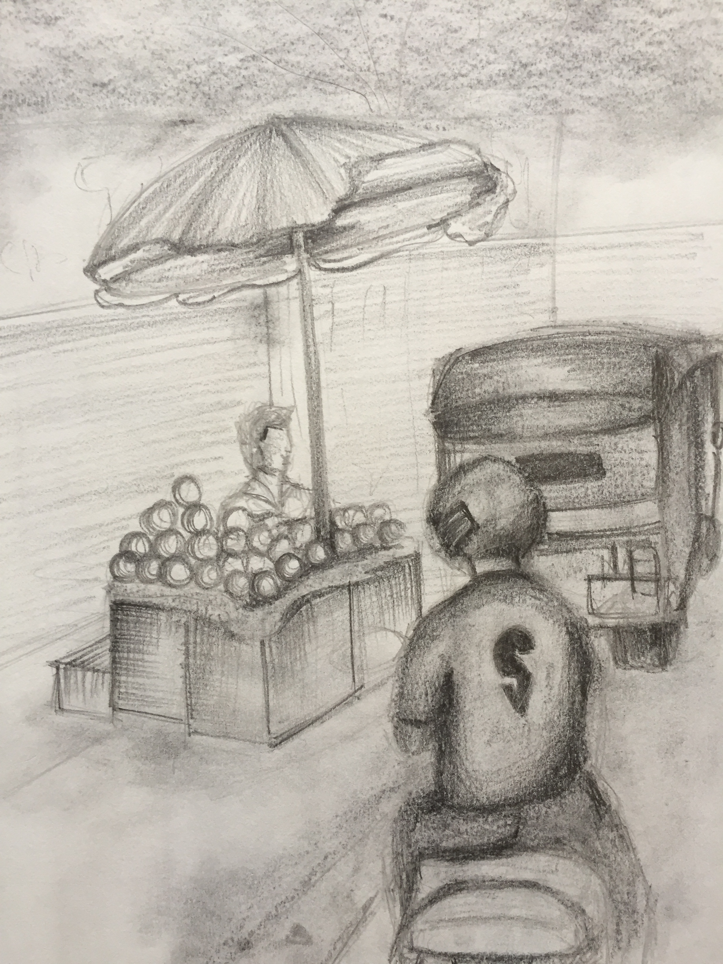 We received two assignments,one was to draw the same object in different lighting conditions,and the other was to draw the same place in a day and night setting.This is my attempt at doing justice to the assignments;