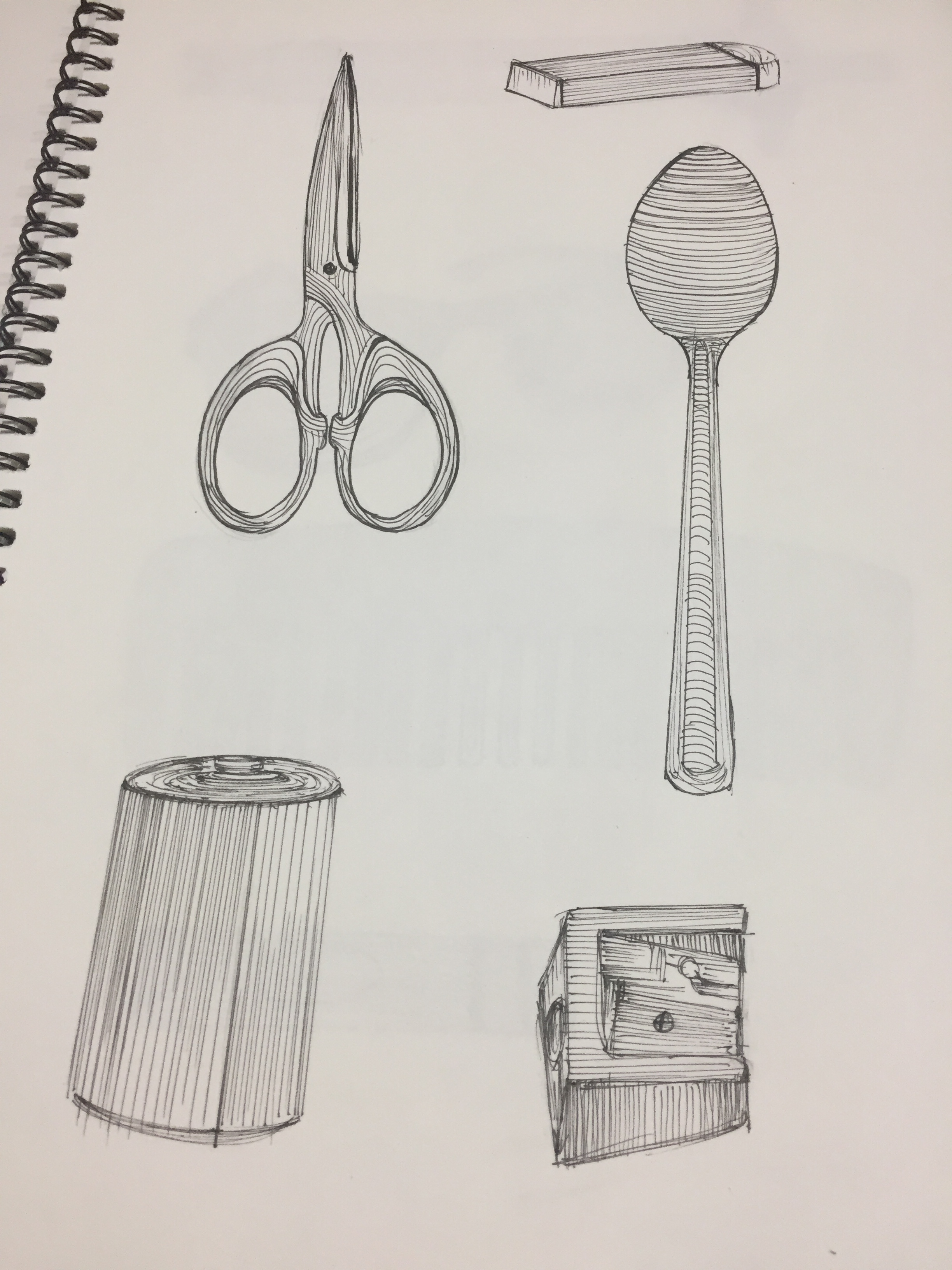 My home assignment was to draw objects around the house and use the linear drawing technique.These are my attempts: