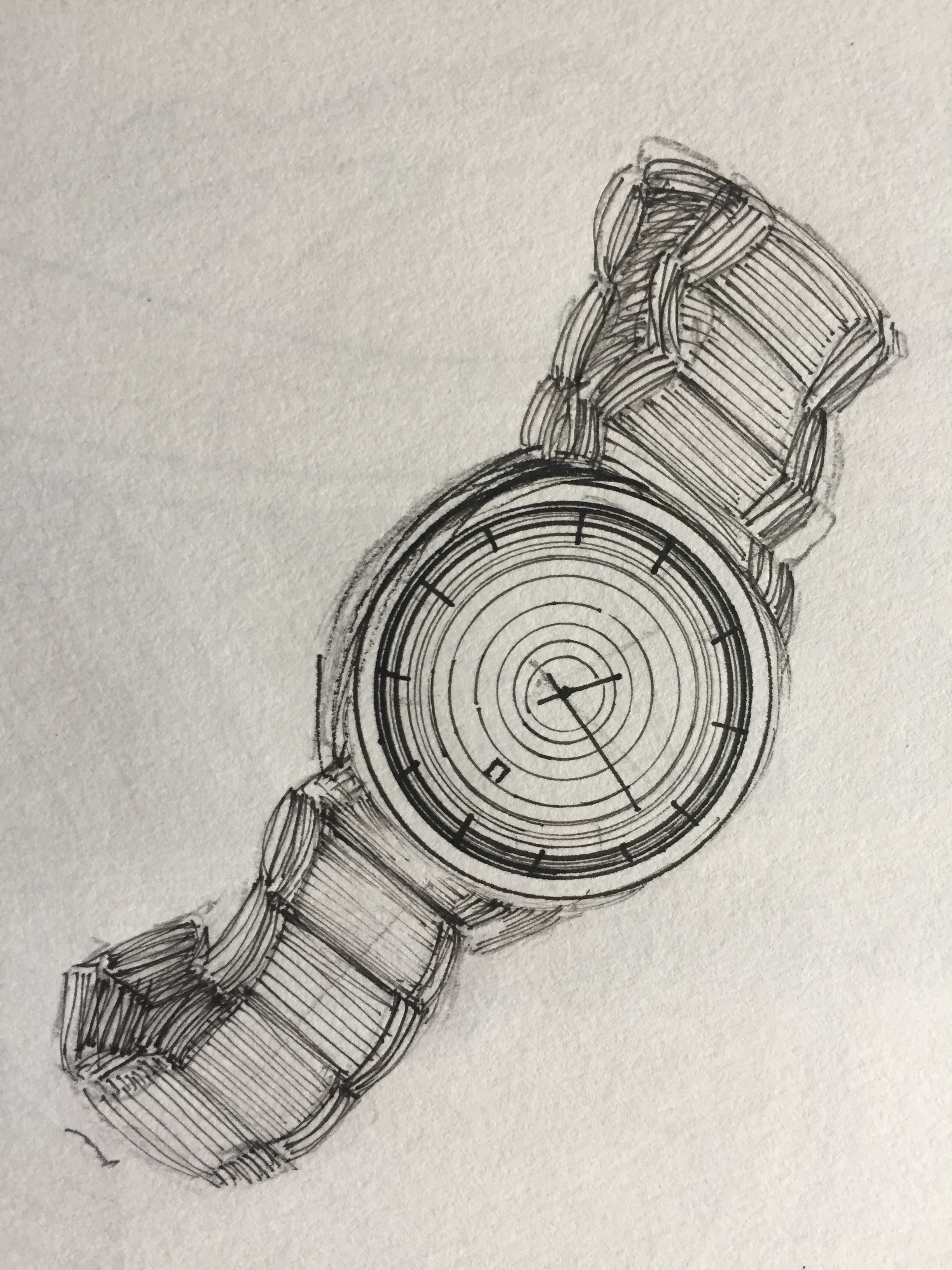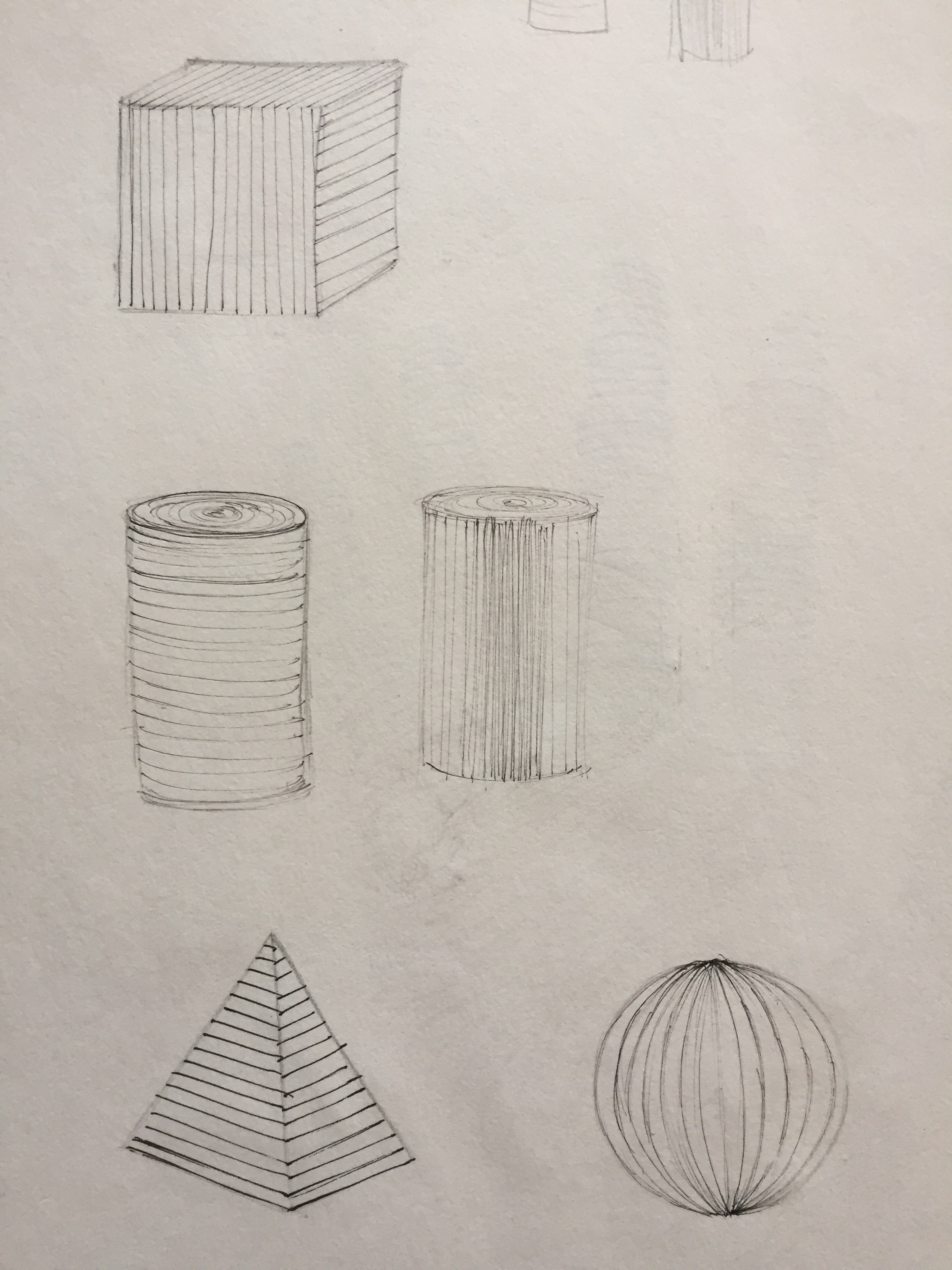I then moved on to basic shapes,a watch,and finally my shoe.I was glad to see that as I did more objects,I showed progress in being able to capture the form of the object using simply lines and no rendering at all.