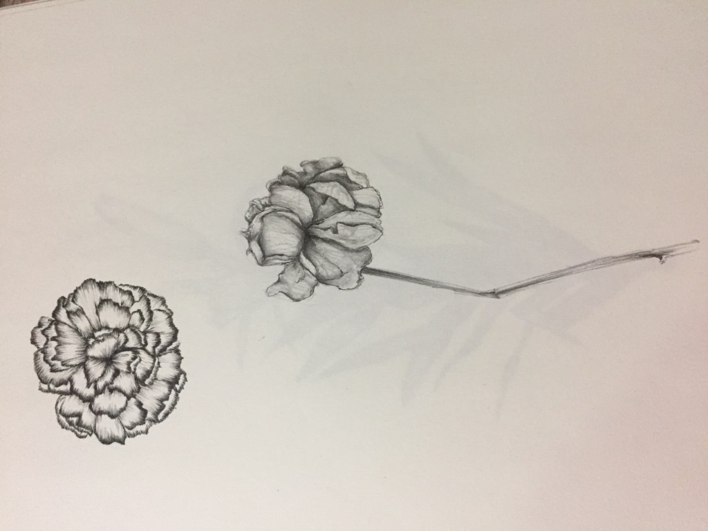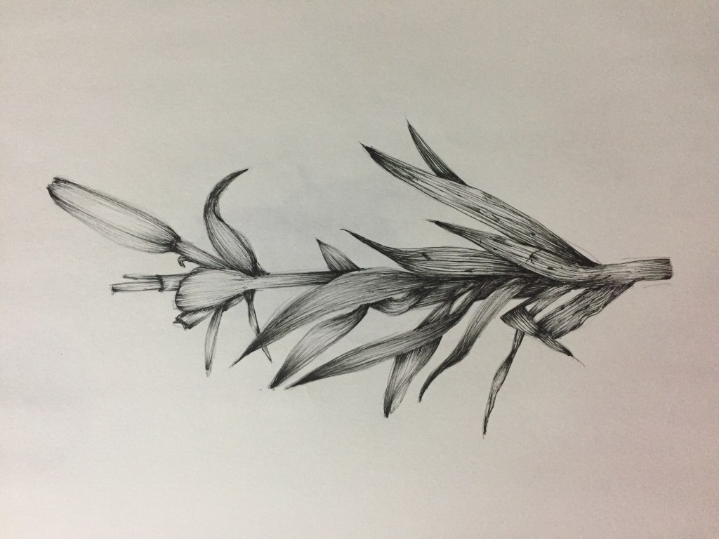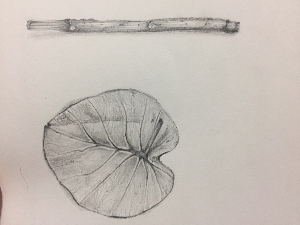The class began with the faculty telling us what to do and how to do it,namely placing the material we’d brought in front of us and drawing a complete render of it.I was excited for this as I personally have always enjoyed drawing plant material (hello bio journal diagrams) and thought I was pretty good at it.The faculty demonstrated how the render was to be done,and I immediately realized that this would take me much longer than I thought it would.