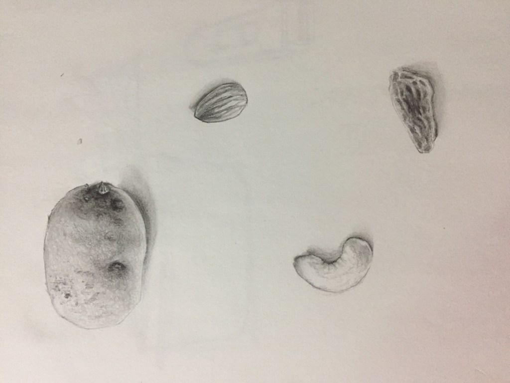 The home assignments given to us were a continuation of classwork,to draw organic and inorganic surfaces found around us.