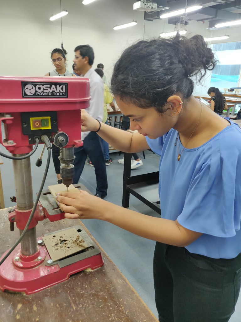 I am always intimidated by the huge machines in the workshop.Furthermore,I was really tensed since other people had complex mechanisms and intricate models going on for them,and was worried that mine looked too basic.But I knew that my grip itself was quite unique,and that I had genuinely tried my best to abstract it.So i started cutting my plank down to size.