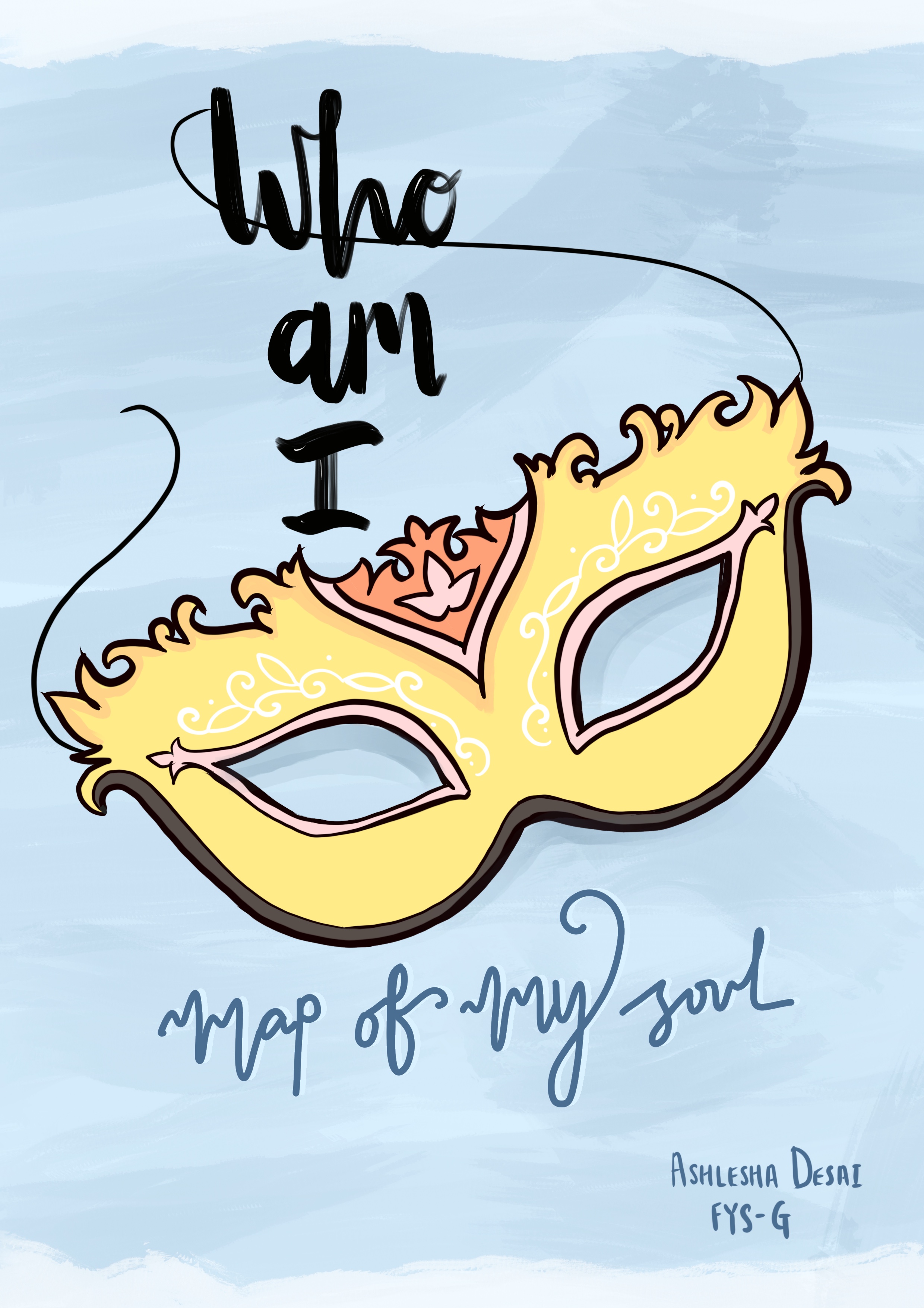 I wanted the cover to represent the Persona shown to society as a facade.Thus I used a masquerade mask on it.Overall,I’m very happy with the final outcome,and a pleasant close on the chapter called ‘Who am I?’.