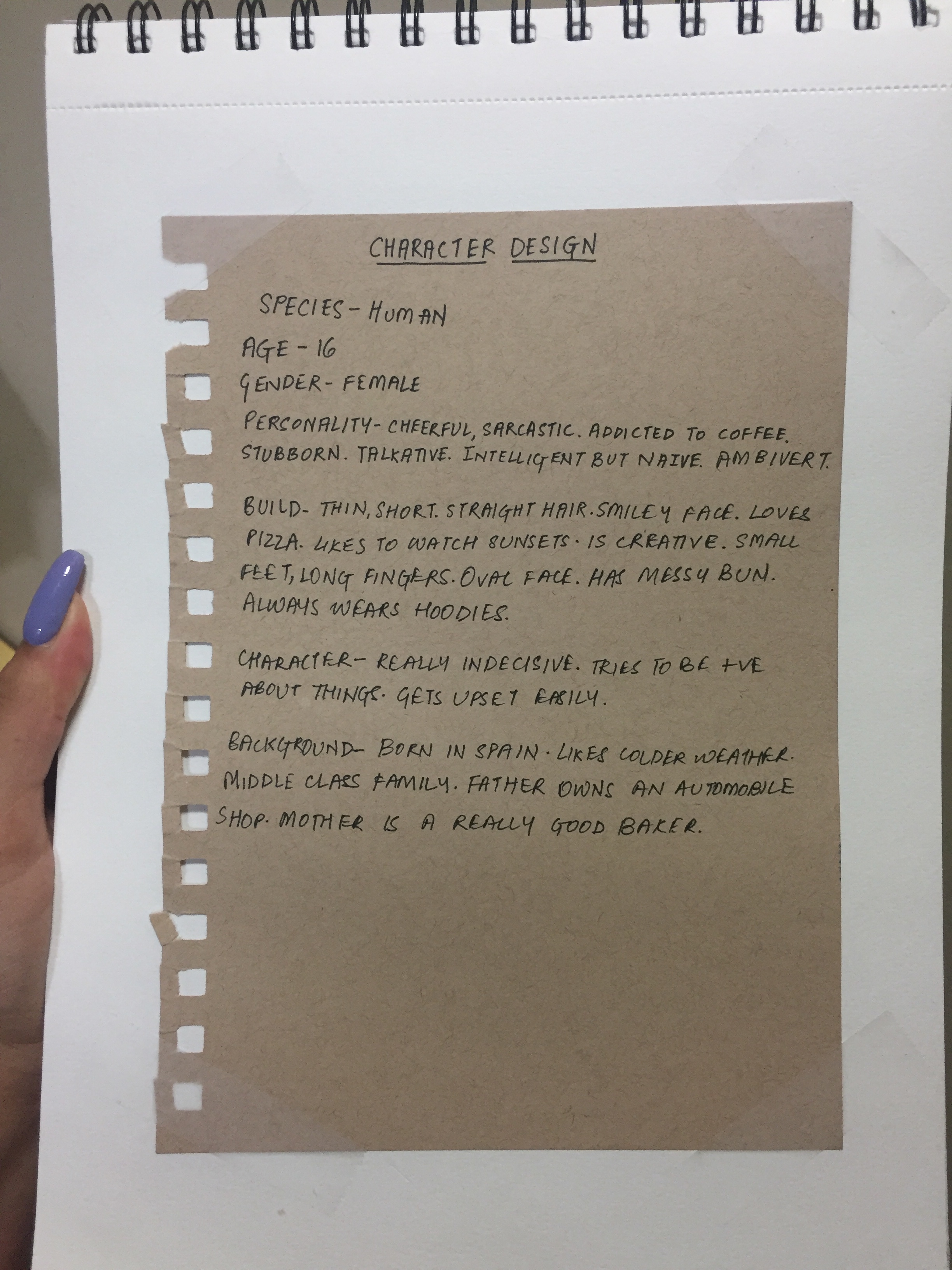 So this class was a little out of my comfort zone.However,since I knew beforehand that this class would go into development of my zine,I’d already begun planning out my character: