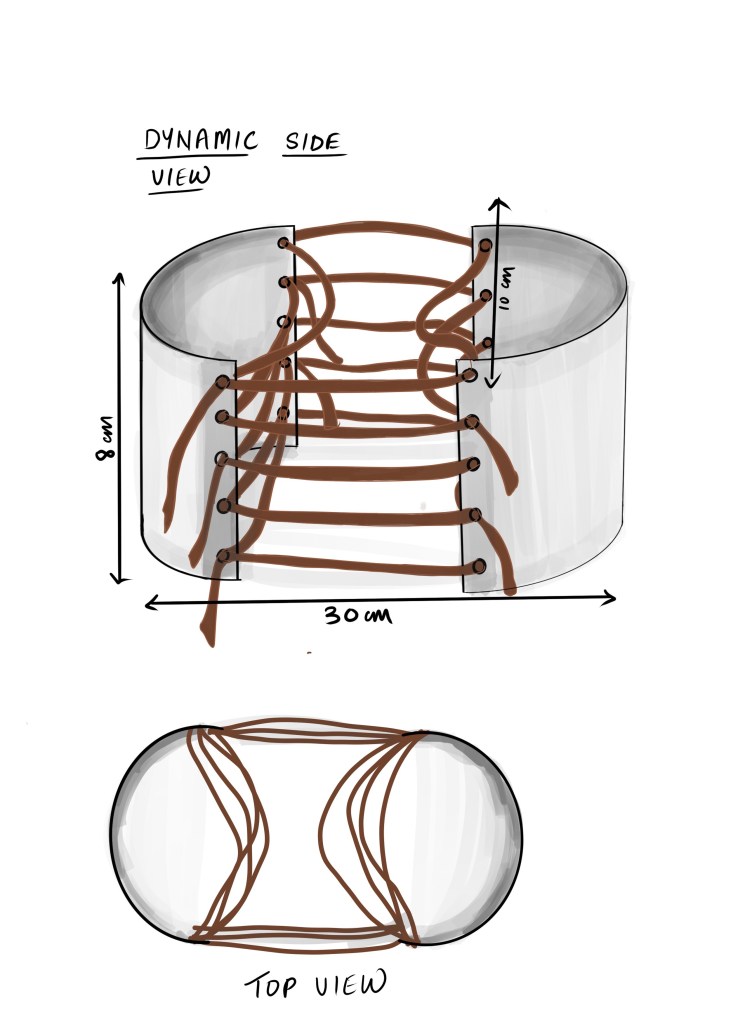 The next idea we had was to make proper kneepads and have strings go through them like a corset.it would work by pulling the strings on each side so that the ropes keep tightening,forcing our knees to join.We modified this concept a little bit,and used a half cut PVC pipe on the backs of our knees with ropes in between.This concept we took ahead for our prototyping.