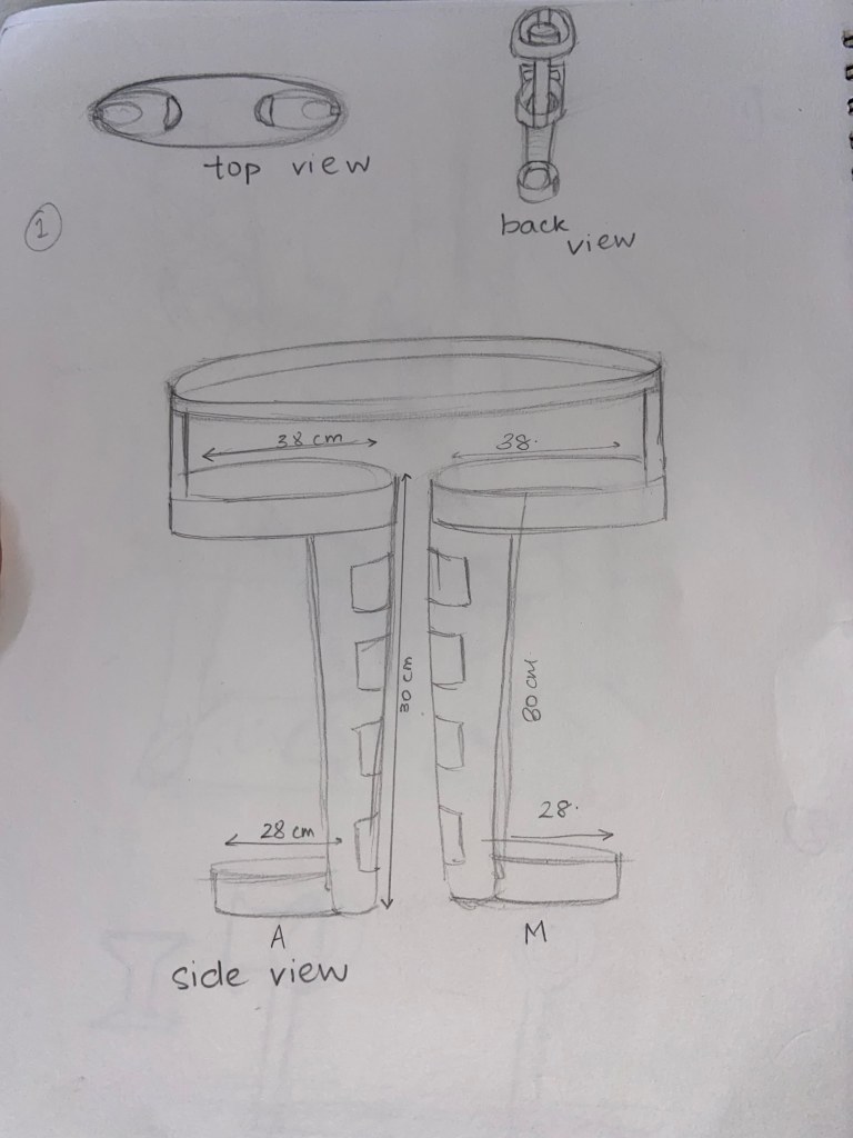 The last idea came to us pretty late but it was an important one.This consisted of half cut pipes(again),supporting the backs of our knees,and a slider mechanism for both of us to pull so that the pipes push our knees together from both sides when the handles are tugged.This is another concept we took ahead for prototyping.