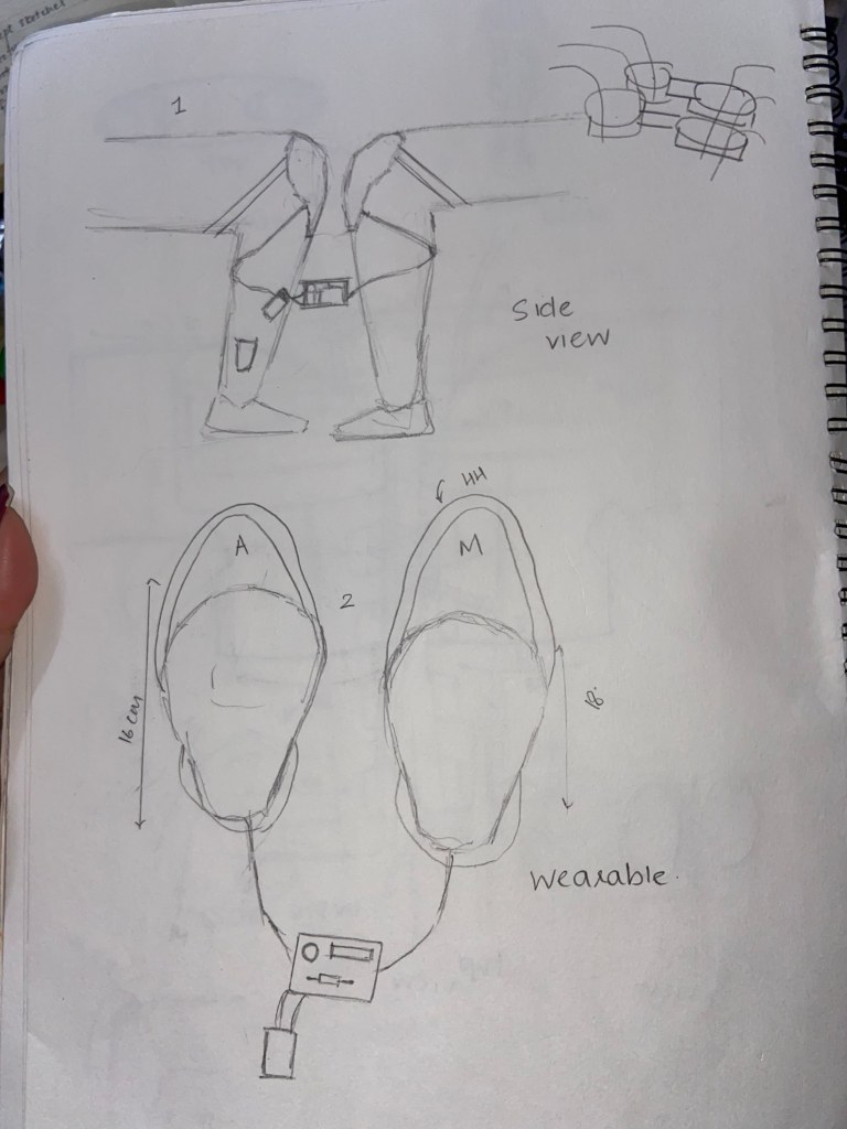 For the knee to knee interaction,our first idea was to make a sort of padding on our calves and attach magnets along this pad,to allow the knees to forcefully attract.We did not use this concept later since the magnets needed to be extremely powerful to force our legs to move and it just wasn’t feasible.