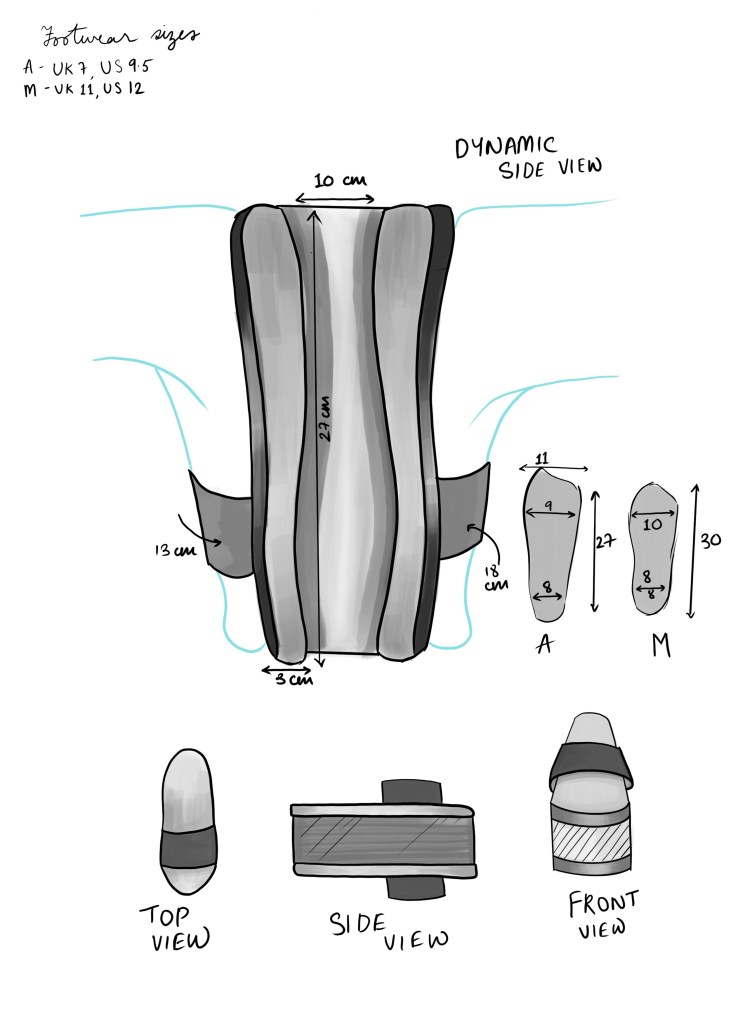 Our very first concept for this one was to make two “slider shoe” models fitted exactly to both our feet,and then attach them with a thick block of foam in between so that our feet can’t touch.This one was an instant hit with both of us,one of the first concepts to get approved and prototyped.It was a simple idea but did the job very well.So this one definitely went for prototyping.