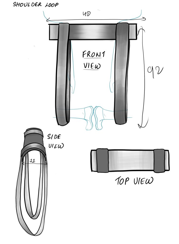 Instead of making things so complex,we decided to explore some sort of support from our shoulders to our ankles.So we thought creating an elongated shoulder wearable with strong straps on it,that would help us suspend our knees.It seemed to be convenient and easy enough,so we decided to prototype this.