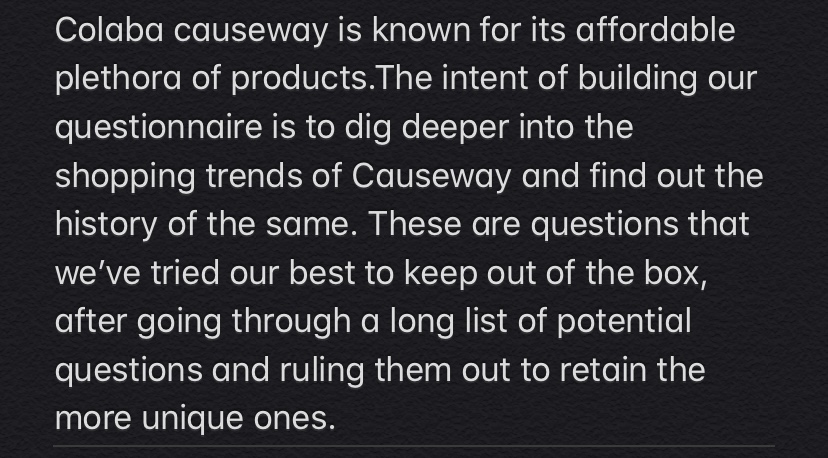 After almost getting our entire questionnaire butchered by the faculty,we finally settled for three basic questions: