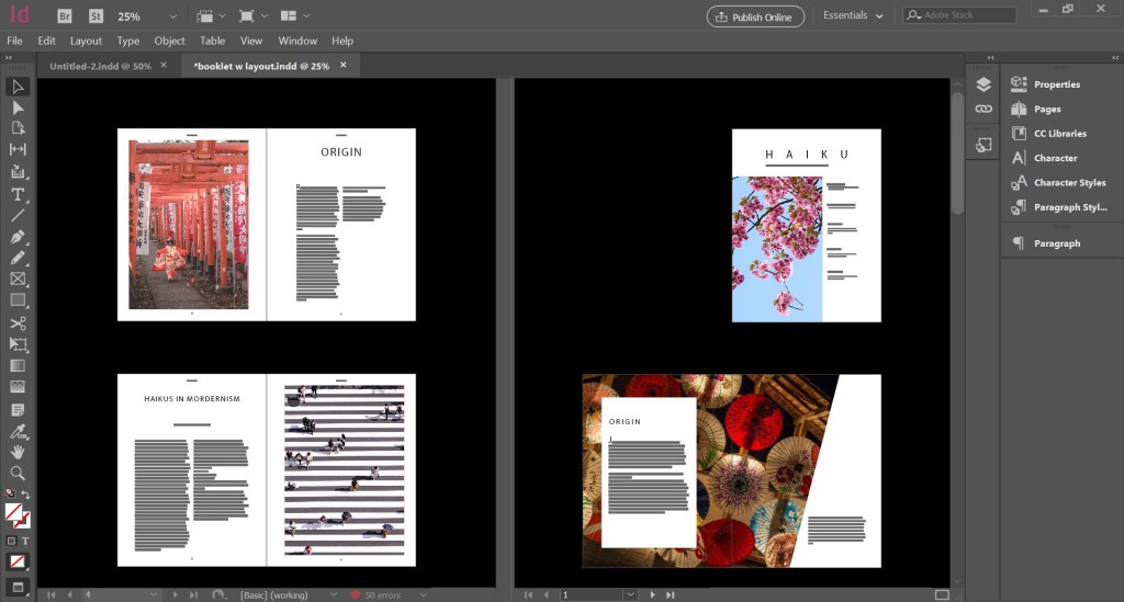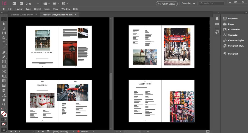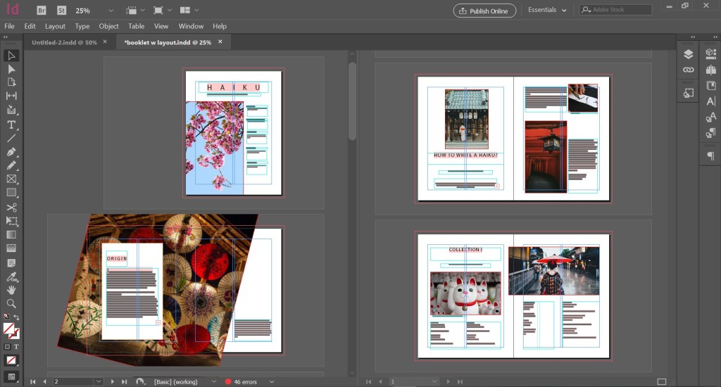 Our task was to take help from the magazine layouts we just traced, and create a new booklet using the same. I created a booklet about Haikus.