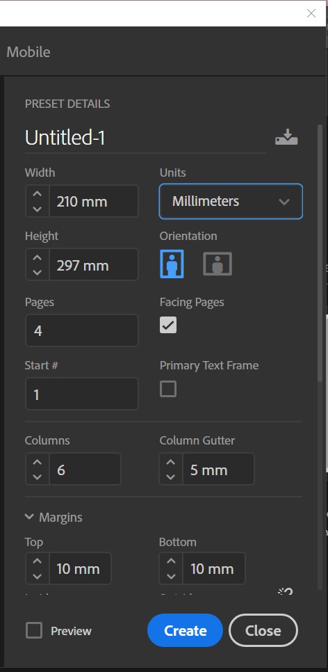 In this class we learnt how to make a basic indesign document, and how to configure the settings with respect to the topics mentioned above while opening a new document.