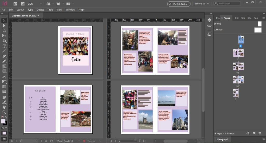 Today’s class was an introduction to a completely new software, called InDesign. The faculty first asked us a question, ‘What is it that both Illustrator and Photoshop cannot do?’ I did a double take, because both of these softwares combined are the most important applications, not just in the Creative Suite, but in the design world itself. So what could possibly be the need for a third software? One thing I noticed that I cannot do is create layouts. And even if I do create one somehow, for every new page or layer, I’d have to keep manually creating rectangles and placeholders and whatnot, and they would still look similar, but not exactly the same. This is the main problem that InDesign can solve.