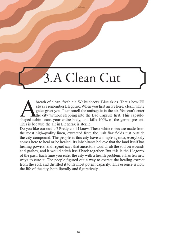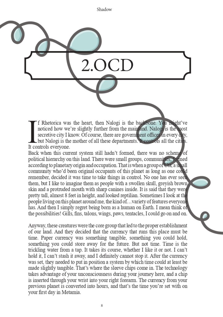 I also tried to experiment with fonts ( only to end up using Times New Roman). I used Market Deco fro my cover, since i thought it looked good. It’s an all-caps and a spaced out sans serif font. For chapter titles, I learnt how to create a border by adding a stroke around the text box, and then changing the corner setting to make it look like a banner. I used a black banner like this around all my titles.