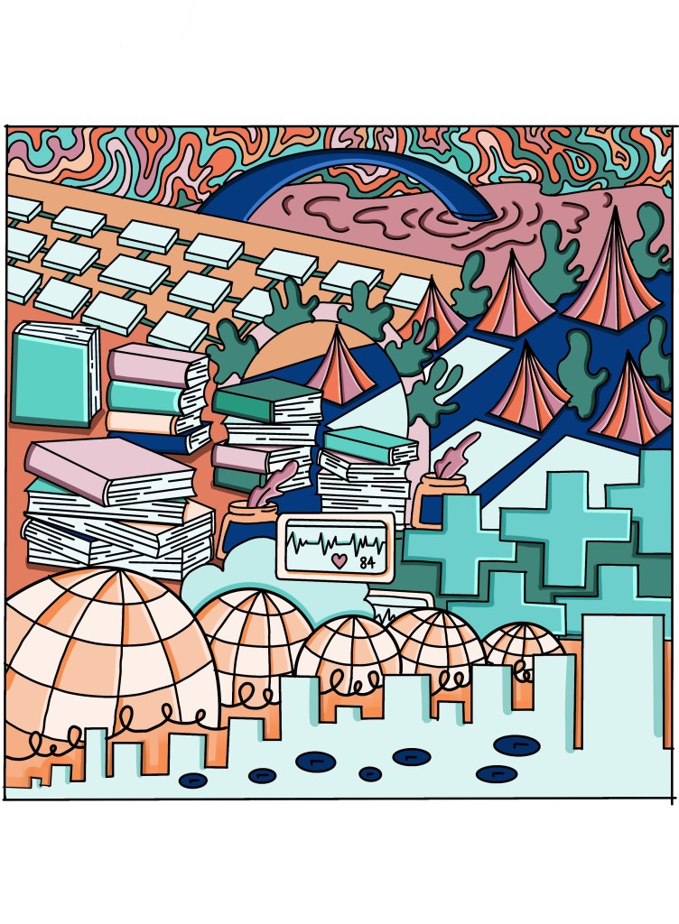 I put my iterations in the booklet, but I thought they looked too boring on their own. So I made some extra illustrations of my own, and stuck to the colour palette I decided. It really made the booklet look much better.