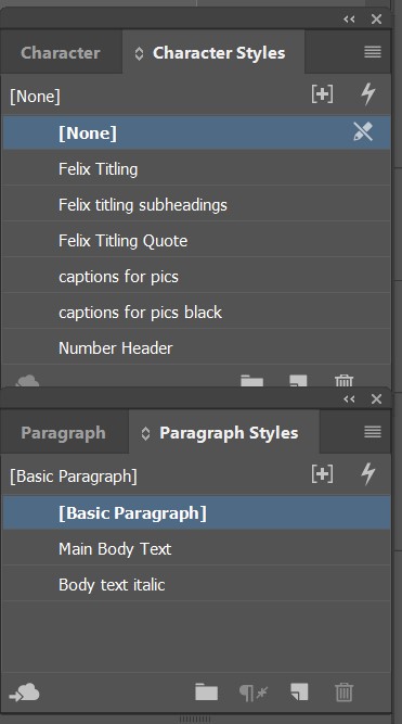 Through this process, I understood a very important feature, the paragraph and character styles. At first, when I was making my seminar booklet for project one, I did not find it important enough to use paragraphs and character style since it was only a six-page book. But here I realised that when you are formatting a 30 page book, it is very important to have consistency. And it is very easy to vary any font in Adobe InDesign, and the font could be varied by as small as of 10 point kerning, or even a one point font size difference. But it would still show through and mess up the alignment. So I set up definite paragraph and character styles for my document and I really understood how this helps me work faster, and it made my workflow easier. I was also slowly getting used to all the shortcuts which helped me speed things up.