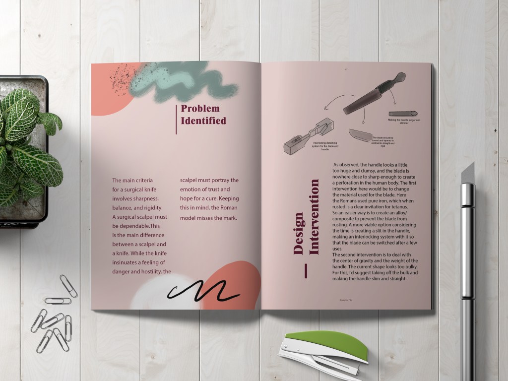 The surgical knife immediately caught my eye when I spotted it on r/ArtefactPorn. This page in general proved very helpful, but this knife in particular is something I wouldn’t even have noticed if not for this subReddit . The Romans loved to open up humans and explore their insides. All the surgical tools used by them look convincingly like torture devices. This scalpel in particular, had a lot that could be fixed. You can read my final write-up and see the scalpel itself in the drive link attached below.