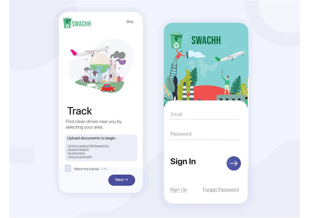 With this came the idea of creating an app interface. I wanted to create an app that aids in waste cleanup, and is quite Interactive as well. Thats how I came up with the Idea of the Swacchh App.
